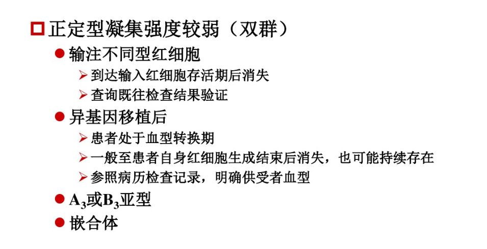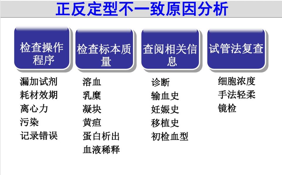 不知道各位老师有没有遇到过血型鉴定正反定型不一致的情况?如果有,是否有进行原因分析以及做进一步处理?