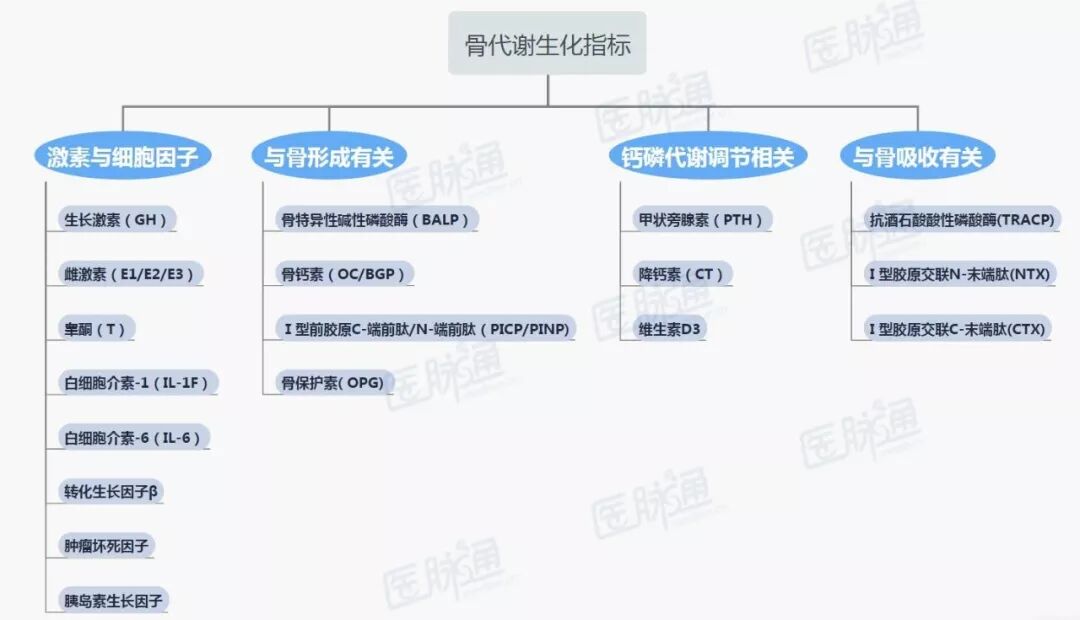 激素、生长因子与骨组织 生长激素(GH):GH是机体组织细胞的生长、发育和代谢的调节因素之一,起十分重要的促细胞分化增殖作用。近年来有研究认为,GH可直接作用于骨骼细胞,但更多的是通过刺激IGF-1的合成进行控制的,GH分泌不足是引起中老年人骨质疏松的重要原因之一。 雌激素:骨组织是雌激素作用的重要靶组织,雌激素受体α和β在骨和骨髓中广泛表达。研究表明,雌激素主要通过与雌激素受体α作用发挥骨代谢调节作用。雌激素是维持正常骨骼骨量和骨结构的必需激素,雌激素在维持骨吸收和骨形成中起主要作用,因此,雌激素的缺乏是绝经后骨质疏松症发生的主要原因,绝经后5-10年应用激素补充治疗能降低50%的骨质疏松性骨折的发生。 睾酮(T):睾酮在男性原发性骨质疏松症中起着非常重要的作用,且与男性原发性骨质疏松及骨折关系密切。睾酮在骨骼的生长代谢、骨量维持及抗骨量丢失方面均起着重要作用。儿童期表现尤为突出,如促进骨骼肌发育、促进骨骼中钙盐沉积,使骨骼增厚生长等作用;青春期主要增加骨松质与骨皮质的骨量,对达骨峰值起着重要作用;成年后则主要促进骨形成并抑制骨吸收,并与其他调节骨代谢的激素共同维持骨量,调节骨代谢。睾酮常用的检查方法是放射免疫分析法。 白细胞介素-1(IL-1):IL-1有11个成员,被称为白细胞介素-1家族。IL-1可直接加强破骨细胞的活性及抑制成熟破骨细胞的凋亡,延长成熟破骨细胞的寿命。IL-1在骨质疏松演变中具有重要作用,IL-1是破骨细胞的重要激活因子,也是决定骨密度的重要因素,是破骨细胞性骨吸收的强有力刺激因子。 白细胞介素-6:IL-6在原发性骨质疏松的发病机制中具有重要作用。通过调节破骨细胞和成骨细胞发育和功能实现对骨代谢的调节作用。IL-6与骨质疏松症的发生相关。IL-6升高可作为机体破骨细胞功能活跃的标志。变形性骨炎、多发性骨髓瘤、银屑病等,IL-6水平升高。 转化生长因子β(TGF-β):TGF-β广泛存在于骨组织中。在骨骼中,成骨细胞和软骨细胞可以合成TGF-β,骨组织中TGF-β的浓度是其他组织的100倍,骨组织中含量最多的是TGF-β1。血中TGF-β浓度下降时,促进骨形成作用减弱,骨密度降低,可诱发骨质疏松等代谢性骨病。 肿瘤坏死因子(TNF):TNF-α是十分重要的破骨细胞激活因子,TNF-α抑制成骨的作用表现在对骨髓间充质干细胞的成骨分化、成骨细胞矿化有显著的抑制功能。病理性骨缺失如老年性骨质疏松、慢性炎症引起的骨吸收组织中TNF-α均有提高。检验医学网 胰岛素生长因子(IGF):包括IGF-Ⅰ和IGF-Ⅱ。IGF-Ⅰ是骨骼中含量最丰富的生长因子,骨组织中的IGF-Ⅰ主要来自成骨细胞和骨髓基质细胞,通过内分泌、自分泌和旁分泌途径作用于骨。研究表明,IGF-Ⅰ可促进成骨细胞分化、增殖、募集,促进成骨细胞胶原及骨钙素合成,加快骨矿化。血清IGF-Ⅰ水平主要受GH调节,IGF-Ⅰ浓度在很大范围内与GH浓度一致,还有研究表明,血清中IGF-Ⅰ水平下降与骨折的发生率密切相关,IGF-Ⅰ的水平可以作为骨折风险评估的指标。 【参考文献】 [1] 张萌萌,张秀珍,邓伟民,等. 骨代谢生化指标临床应用专家共识( 2019) [J].中国骨质疏松杂志,2019,10(25):1357-1372. [2] 张萌萌. 中国老年学学会骨质疏松委员会骨代谢生化指标临床应用专家共识[J].中国骨质疏松杂志,2014,11(20):1263-1272. |