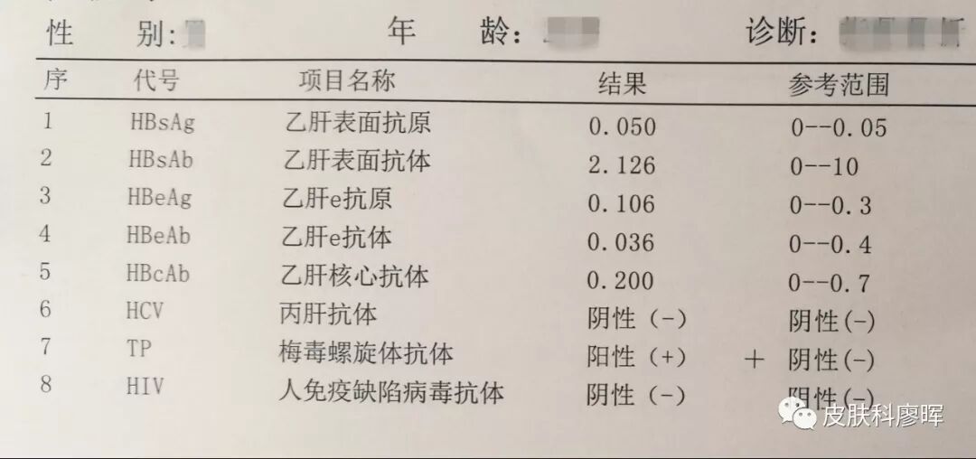 提示:免疫三项检查主要适用于急诊手术或较紧急情况。在临床上,一些医生想为患者节省费用或节省等候时间,习惯开免疫三项申请单以代替免疫八项,初心虽好,但两张申请单不仅存在检验项目多少区别,检测方法也有不同,不宜互相代替。 对于梅毒早期或硬下疳初期患者,有时会出现这种检测现象:免疫三项结果无异常,而免疫八项结果提示梅毒(+)。免疫八项检测能更准确,更敏感地反映疾病感染状况。 第三张检验申请单:TPPA 梅毒检测方法:TPPA TPPA(梅毒螺旋体颗粒凝集试验) 梅毒螺旋体血清学试验包括TPPA 、TPHA 、FTA-ABS 、CLIA、ELISA试验等,在临床工作中,如果采用CLIA或ELISA进行人群筛查,为避免假阳性,则需要采用另一种不同初筛试验的梅毒螺旋体血清学试验如TPPA等,进行阳性结果确认。 TPPA有一个特性,如同一个“疤”,一旦感染梅毒后,即使经过规范治疗,痊愈后,患者的TPPA 结果也不会转阴。 提示:如果患者在住院治疗或手术期间,免疫八项中梅毒结果提示阳性,临床医生需要再开出两张检验申请单(RPR滴度和TPPA),待检验结果出来后,请皮肤科医生会诊以进一步明确诊断。 如果TPPA检测结果为阴性,则可以排除梅毒诊断或作进一步试验。如果RPR滴度及TPPA结果均为阳性,才能确诊患者感染梅毒。
