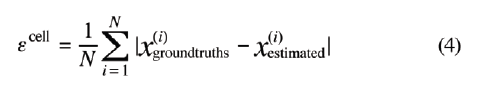 我们计算了基础真值与验证数据集的估计细胞数之间的平均绝对误差。利用不同的置信阈值,使每种细胞的平均绝对误差值达到最低,并将这些置信值用于血细胞的识别过程。误差的计算公式如下: