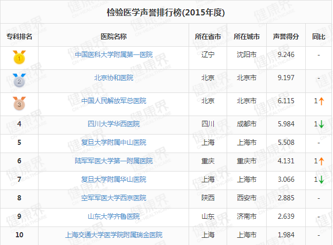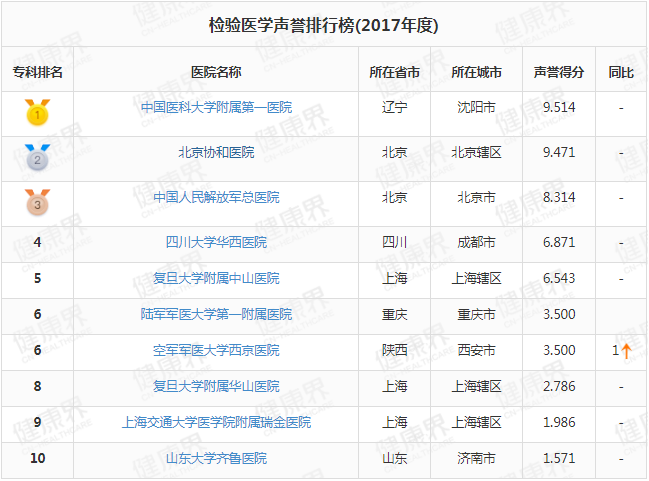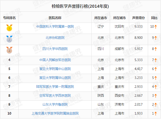 2014年度到2017年度之前,医院专科排行均仅有声誉排行榜。这里也为大家列出参考。