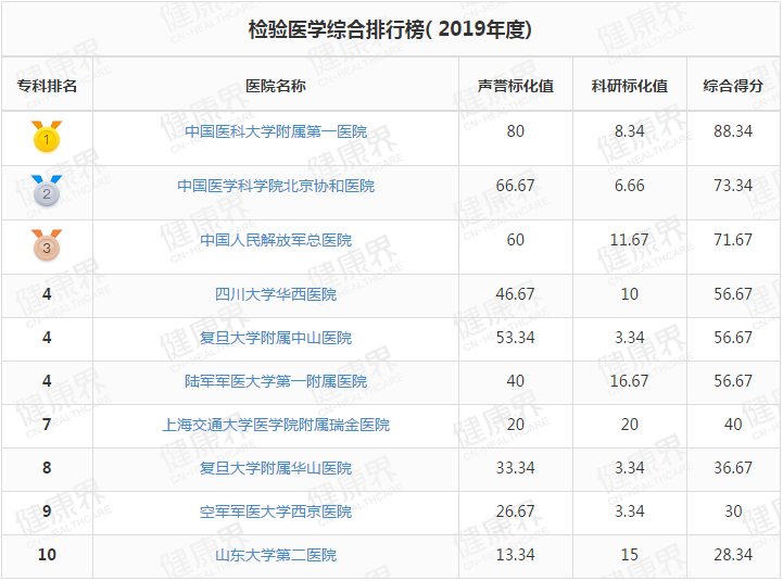 作为检验人,检验君先带大家一起看一下检验医学综合排行榜( 2019年度)。