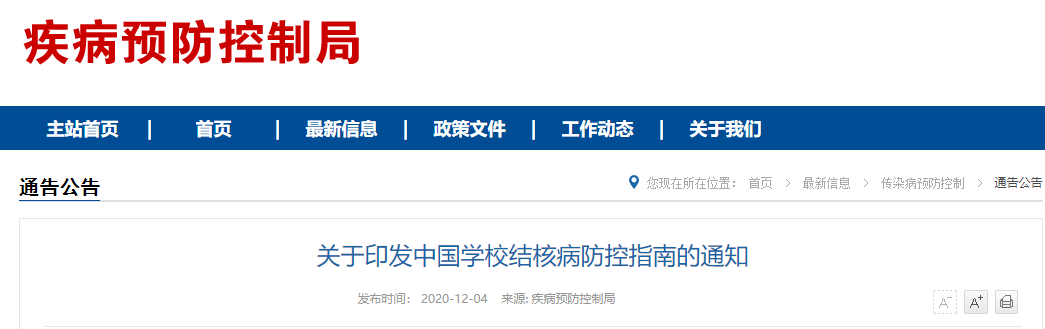 来源:国家卫健委官网、IVD从业者网 12月4日,国家卫健委疾病预防控制局发布《关于印发中国学校结核病防控指南的通知》。 学校结核病防控是学校传染病防控工作的重要内容之一,为更好地指导各地做好学校结核病防控工作,减少结核病在校园内的传播流行,维护正常的教学和生活秩序,国家卫生健康委会同教育部组织专家制定了《中国学校结核病防控指南》。 《指南》全文共10章、27个附件。 第一章“疫情特点和防控策略”介绍了学生人群特点和学校肺结核疫情特点,提出了日常防控、散发疫情处置和突发事件应对等在内的防控策略和措施; 第二章“机构职责”详细描述了教育系统和医疗卫生系统各相关机构的职责和任务,特别强调学校在学校结核病防控工作中的主体责任; 第三章“学校常规预防控制措施”和第四章“疫情主动监测与信息反馈”均为学校结核病防控工作中的日常防控措施。内容包括新生入学结核病检查,师生的健康教育和培训,聚集性场所的通风换气、校园环境的清扫保洁,晨检、因病缺勤病因追查及登记、病例报告和疫情及舆情监测等,对中小学晨检、各类学校因病缺勤病因追查及登记、以及病例报告和转诊等的流程进行了详细阐述,特别提供了开展学校结核病舆情监测的方法和边界词,对学校结核病疫情监测及相关信息反馈提出了明确要求; 第五章至第八章分别为“患者诊断、治疗和管理”、“接触者检查”、“预防性治疗”和“感染控制”,提供了发生学校结核病疫情时的处置措施,这些处置措施均适用于学校散发疫情和突发公共卫生事件。 第九章“学校结核病疫情处置流程”详细梳理了学校发生结核病疫情后的处置流程和疫情报告要求,并提供了发生学校结核病突发公共卫生事件时的应急响应措施; 第十章针对整个学校结核病防控工作,明确提出了对各级各类相关机构的督导和考核要求。 总体上看,《指南》较以往更加强调: 一是结核感染人群检测上,要积极探索重组结核杆菌融合蛋白(EC)等新技术新方法的论证使用,提升检测效果; 二是在接触者筛查环节,做到“应查尽查”; 三是对满足预防性服药条件的感染者,做到“应服尽服”。 |