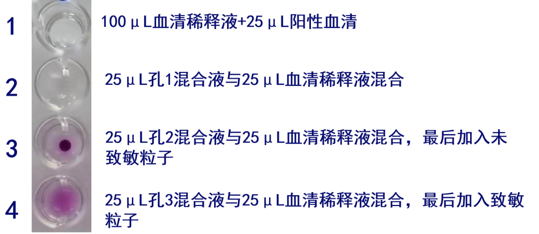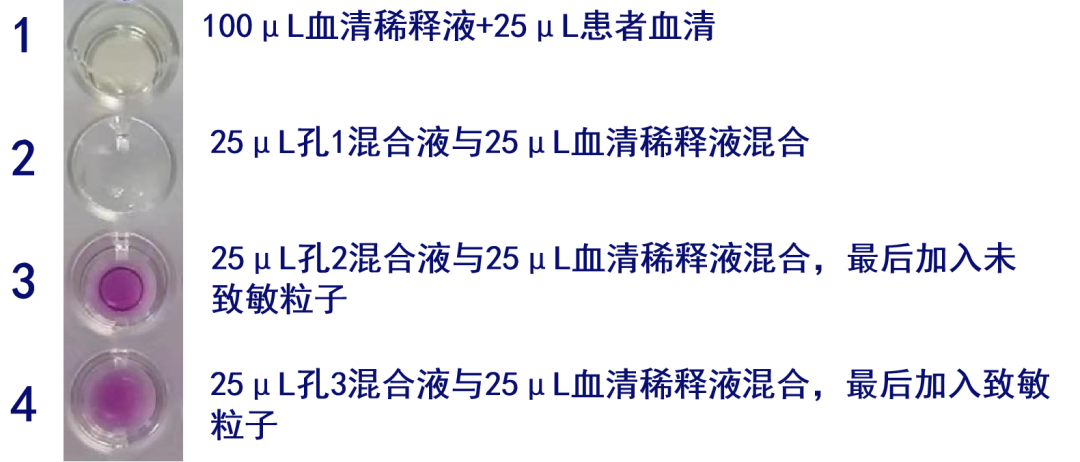 结果 TRUST 试验呈阴性,化学发光试验、胶体金试验都呈阳性。鉴于化学发光法的高灵敏度与胶体金法的高特异性,于是我心想这可能是一个继往梅毒感染或极早期梅毒感染患者(不同检测方法对比可参考往期推文:我又被临床投诉梅毒检测结果,对不起,这个锅我们检验科不背!),但是不能就凭这样出我们的检验报告结果。 3. 吸收实验验证 TPPA 检测结果 阴性对照孔加入的试剂是未致敏粒子,若出现阳性反应,一方面可能是未致敏粒子被致敏粒子污染,另一方面可能是血清中存在某种不明抗体,该抗体恰好能够匹配未致敏粒子的抗原决定簇,发生抗原抗体反应,出现了假阳性结果。 首先,验证未致敏粒子是否被致敏粒子污染 介质对照实验步骤:孔 1 中加入 25μL 血清稀释液后加 25μL 未致敏粒子 ;孔 2 中加入 25μL 血清稀释液再加 25μL 致敏粒子,置室温 2 小时。 两孔都正常凝集,证明未致敏粒子与致敏粒子自身没有问题。 阳性对照实验步骤:在孔 1 中加入 100μL 血清稀释液和 25μL 阳性对照血清,孔 2、3、4 分别加入血清稀释液 25μL,然后从孔 1 吸 25μL 混合液以 2n 方式依次稀释到孔 4 后 25μL 吸弃,孔 3、孔 4 分别加入未致敏粒子、致敏粒子,置室温两小时。结果如下图: 孔 3 阴性,孔 4 阳性结果,说明未致敏粒子未被致敏粒子污染。 其次,验证血清中是否是存在干扰实验的不明抗体 患者样本对照实验步骤:在孔 1 加入 100μL 血清稀释液和 25μL 患者血清,孔 2、3、4 分别加入血清稀释液 25μL,然后从孔 1 吸 25μL 混合液以 2n 方式依次稀释到孔 4 后 25μL 吸弃,孔 3、孔 4 分别加入未致敏粒子、致敏粒子,置室温两小时。结果如下: 结果依然是阴性对照孔呈阳性凝集,孔 4 的实验孔呈现强阳性凝集。 吸收实验操作步骤:取用溶解液调制好的未致敏粒子 0.95ml 至小试管中,加入患者血清样本 50μL 充分混匀后在室温 25℃放置 30min , 充分吸收患者血清样本中不明抗体。然后 2000rpm 5min 离心 , 取上清液 25μL 至孔 1 中,作为阴性对照;再取上清液 25μL 至孔 2 中并加入 25μL 血清稀释液,混匀后吸弃 25μL 混合液作为实验孔;最后分别在孔 1、2 中加入25μL 未致敏粒子、致敏粒子,置混合器震荡 30s,室温静置 2 小时。结果如下: 通过吸收试验,在血清样品中加入大量未致敏粒子,为血清不明抗体提供了大量的不明抗体结合位点。抗原抗体充分反应后,通过离心,极大程度降低或消除了血清中不明抗体含量,从而避免血清不明抗体结合到明胶粒子上出现假阳性反性。吸收实验后,对照孔 1 阴性,试验孔 2 依然出现了阳性凝集结果,故最后判断该患者为梅毒螺旋体抗体阳性。 三、案列总结 确认结果后询问患者病史,有大量用药史且具体不详,其他无特殊。我们推测阴性对照孔中出现阳性凝集可能是之前的不明用药产生了不明抗体。在 TPPA 试验中所用的未致敏粒子是经过单宁酸处理的明胶粒子,我们推测可能是抗明胶粒子或抗单宁酸抗体,通过吸收试验用大量的未致敏粒子结合掉血清中非特异性不明抗体再通过离心很大程度降低或者消除了血清中非特异性不明抗体含量,使我们在吸收试验后的梅毒螺旋体明胶颗粒凝集试验得到了准确的结果。 在工作中如遇到这类罕见的 TPPA 模式,即阴性对照孔出现阳性反应,并且用对照试验排除人为、试剂的原因,很有可能是血清中出现了非特异性的不明抗体。这时如果是一位非梅毒螺旋体感染者的血清中恰巧出现了非特异性不明抗体,为避免发出错误的检验结果,我们可以通过吸收试验吸收这些不明抗体来排除干扰,使检验结果更加准确可靠。 |