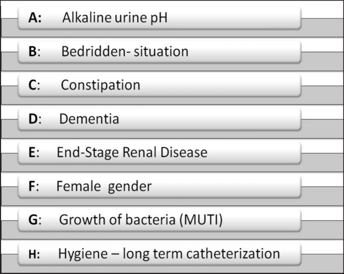 Nikos Sabanis 对 PubMed 中 1978~2017 年所有 PUBS 案例进行回顾性研究,发现 PUBS 患者尿培养中最常见的病原菌是大肠埃希菌(占 20.8%),21 种病原菌分布如下表: PUBS 与色氨酸的异常代谢和尿路感染相关,有哪些诱发因素呢?研究发现 PUBS 患者的平均年龄为 78.9±12.3 岁,女性占 70.7%,便秘占 90.1%,长期卧床占 76.1%,长期置管占 45.1%,有 42.8%诊断为痴呆,有 14.3%反复出现尿路感染,有 14.1%合并慢性肾脏病,91.3%PUBS 患者伴碱性尿。Nikos Sabanis 推出了 PUBS 易感患者的 ABCDEFGH 规则,如下:(1) A, alkaline urine,碱性尿能促进吲哚进一步转化为靛蓝和靛红,但 PUBS 并不一定要在碱性环境才能形成,2008 年 Chung 等在 Int J Infect Dis 上报道酸性尿中也可出现 PUBS。(2) B, bedridden-situation,长期卧床常导致病人长期导尿管置入,是泌尿道感染的危险因素。(3) C, constipation,便秘是主要诱因,便秘能引起肠道细菌的过度繁殖,吸收入肝的吲哚增加,从而使得尿中的靛蓝、靛红处于高水平状态。(4) D, dementia,痴呆患者伴有排尿障碍,留置导尿是重要的护理手段。(5) E, end-stage renal disease,慢性肾衰患者长期留置尿管,肾脏负荷增加,对硫酸吲哚酚的清除作用显著降低。(6) F, female gender,PUBS 常见于老年女性患者,这与女性尿路的生理结构有关。(7) G, growth of bacteria,产磷酸酶和 / 或硫酸酶的细菌,均有可能引起 PUBS。(8) H, hygiene long term catheterization,导尿是一种侵袭性的操作,长期置管能减弱尿道黏膜对细菌的抵抗能力,影响膀胱对细菌的冲刷作用,致使细菌逆行引发尿路感染。 PUBS 易感患者的 ABCDEFGH 规则 | Curr Urol 大多数学者认为 PUBS 为无症状尿路感染,并不引起病人病情的加重与减轻,无需针对性强化治疗。但也有学者认为如病人患有严重基础疾病,或严重并发症如脓毒症者,需积极治疗,即给予酸化尿液、抗生素治疗等。导尿管相关性感染病原菌以革兰阴性杆菌为主,对含酶抑制剂等抗生素敏感性较好,可指导临床用药。然而,目前尚无明确的 PUBS 治疗指导。另外,相对于治疗 PUBS 而言,多数学者认为加强导尿管的护理,控制尿路感染及便秘等诱因对于 PUBS 的预防更为重要。总而言之,PUBS 是一种良性的、影响不大的临床表现,绝大部分患者都是无症。由于尿袋颜色变紫容易引起患者家属的关切和质疑,若医护人员缺乏对紫色尿袋综合征的了解,可能会影响与患者家属的沟通和交流。故医护人员在了解上述机制后,若遇到类似情况可做好相应的治疗措施,可减少由此引起的恐慌和过度检查。参考资料: [1] Léo Plaçais, Christian Denier, Purple Urine after Catheterization, N Engl J Med 2019; 381:e33.[2] Khan Fahad, Chaudhry Muhammad A, Qureshi Noorulain et al. Purple urine bag syndrome: an alarming hue? A brief review of the literature. Int J Nephrol, 2011, 2011: 419213.[3] Kalsi Dilraj S, Ward Joel, Lee Regent et al. Purple Urine Bag Syndrome: A Rare Spot Diagnosis. Dis Markers, 2017, 2017: 9131872.[4] Sabanis Nikos, Paschou Eleni, Papanikolaou Panagiota et al. Purple Urine Bag Syndrome: More Than Eyes Can See. Curr Urol, 2019, 13: 125-132..[5] 张路,崔欣,王瑶,等。肺炎克雷伯菌相关紫色尿袋综合征一例并文献复习 [J]. 中国医学科学院学报,2018, 40 (001):136-138. |