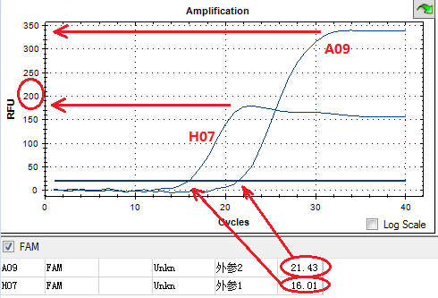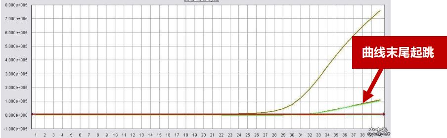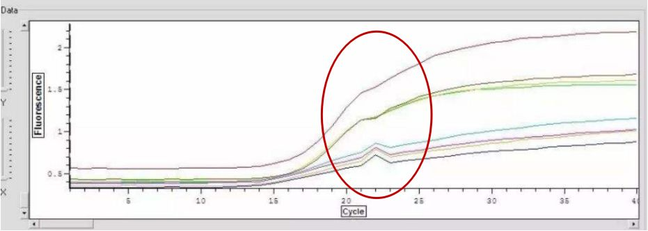 在PCR实验过程中,我们经常会遇到各种奇特的扩增曲线,如何正确解读这些曲线并且做出恰当的解决方案是我们一线实验者需要练就的基本功。看完下面的文章,教你如何处理PCR实验过程中容易出现的异常曲线,助你在今后的工作中"游刃有余". 异常曲线1:PCR扩增抑制 原因分析:H07存在扩增抑制 解决方案:将样本稀释后进行扩增(抑制物的影响可通过稀释样本消除) 异常曲线2:自动基线设置问题 原因分析:自动基线问题 解决方案:手动设置基线。将Baseline End设置为“扩增信号出现的前一个循环”即,图片展原始为26,将其设置为20,点击OK即可恢复正常曲线。 异常曲线3:荧光定量PCR实验结果中无Ct值出现 原因分析: (1)PCR参数设置错误:在设计循环参数时没有设置荧光信号采集; (2)模板降解: 避免样品制备中杂质的引入及反复冻融的情况; (3)引物或者探针降解:可通过PAGE电泳检测其完整性; (4)电脑设置了自动休眠。 解决方案:按照原因分析进行一一核查,对症处理。 异常曲线4:斜直线型扩增曲线 PCR实验首次检测呈斜直线型扩增曲线,再次复检后结果基本均为正常阴性。 原因分析: (1)分液不准确,检查检测后的反应管可发现管内的PCR反应液量明显少于正常管; (2)反应管气密性差,反应过程中溶液蒸发引起探针浓度增加,导致曲线呈斜直线状。 解决方案: (1)分液均匀,上机前检查八连管液面是否在同一水平线上; (2)八连管盖盖严,上机前检查是否有缝隙。 异常曲线5:扩增曲线末尾起跳 PCR实验结果中有曲线出现末尾起跳但是没有完整扩增的现象。 原因分析: (1)阴参曲线末尾起跳,通常表示存在污染; (2)复检样本,排除非特异性扩增的可能性; (3)正常样本也可存在曲线末尾起跳,表示样本浓度低或者加样量不准确。 解决方案: (1)排除是否存在污染; (2)排除污染原因后复检样本,如果复检后曲线为阴性直线则说明之前的末尾起跳为非特异性扩增,如果复检后曲线仍与之前一致则说明末尾起跳表示该样本中待检病毒核酸的浓度偏低。 异常曲线6:山域型曲线 原因分析: 严重的蒸发会呈现先上升后下降的曲线,轻微的蒸发会是一种缓慢的上升,这两类异常的曲线可以看一下检测后的反应管液面是否有下降的现象来证明。 解决方案: 上机检测前检查八连管管盖,保证无缝隙后上机扩增。 异常曲线7:扩增曲线有向上或者向下的尖峰 原因分析: (1)仪器不稳定导致的扩增曲线异常(也可能突然停电或者电压不稳); (2)如果尖峰向下,可能是卤素灯老化所致发射光源不稳定(指卤钨灯光源的激发器) (3)如果是单一的孔位出现尖峰,除了考虑仪器或者孔位问题外,还要考虑反应体系是否有气泡所致。 解决方案: 按照原因分析进行一一核查,对症处理。 判断扩增曲线是否良好的指标 1.曲线拐点清楚,特别是低浓度样本指数期明显,扩增曲线整体平行性好,基线平而无上扬现象,低浓度样本扩增曲线指数期明显。 2.曲线指数期斜率与扩增效率成正比,斜率越大扩增效率越高。 3.标准的基线平直或略微下降,无明显的上扬趋势。 4.各管的扩增曲线平行性好,表明各反应管的扩增效率相近。 |
