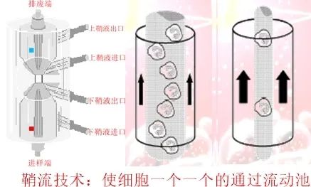混匀池的主要作用是制备样本,样本经过特殊的溶血素处理后,进入流动池进行分类,在分析之前要形成鞘流,所以要有一个鞘液的储存场所——鞘液罐,有了它的存在,就能保障大批量样本连续测定;分类的核心是流动池,它的主要作用是样本在鞘液的包裹下,以层流形式通过光检测区,在激光光源的照射下,对电阻抗、电导及散射光(VCS)的分析,从而对白细胞进行分类。