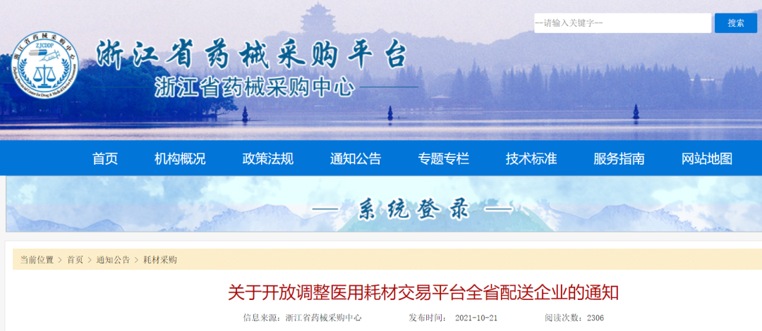 省级配送调整要求 投标企业可登陆系统(http://trade.zgyxcgw.cn:8000/com.hsnn.sso/login.html)完成省级配送企业的调整工作(包括新增、删除配送企业),并上传相应扫描件(详见附件1),无需现场递交纸质材料,具体操作要求见附件2和附件3。 省级配送企业调整时间 2021年10月21日至2021年11月19日(系统开放时间:10月21日9:00至11月19日16:00)。