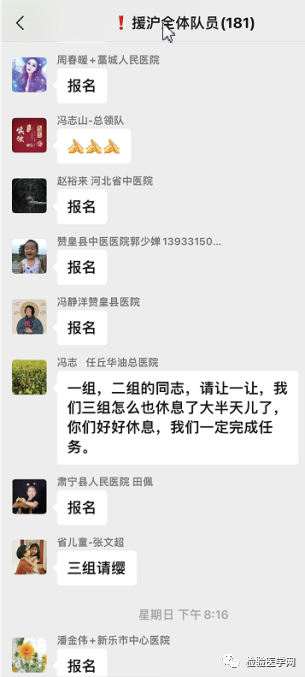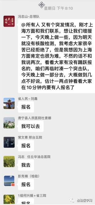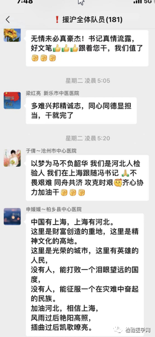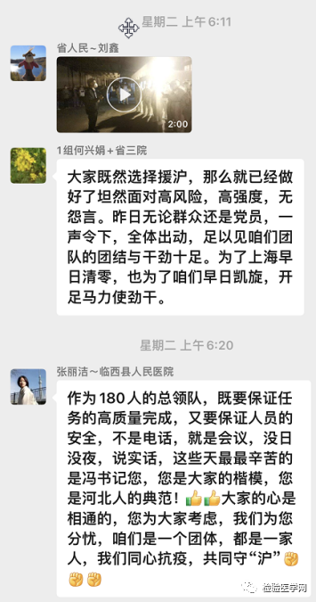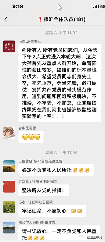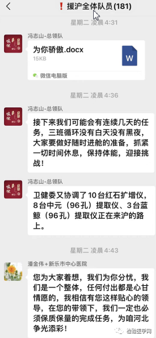 从同事发过来的聊天记录截图中我寻找到冯志山领队这封信发出的时间凌晨四点三十一分,是平静生活的安睡之时,我的脑海中出现是灯光下、白衣战袍、手持加样枪,仪器旁一群人忙碌的身影,作为千里之外的读信人被他们深深感动! |
