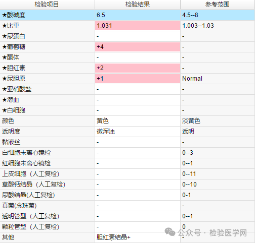 某天,在审核尿常规报告时,发现一个胆红素2+的结果且尿标本很黄。就想着镜检一下,发现镜下有金灿灿的胆红素结晶,像黄金一样,于是电话联系告知临床医生。究竟是什么疾病会出现胆红素结晶呢?