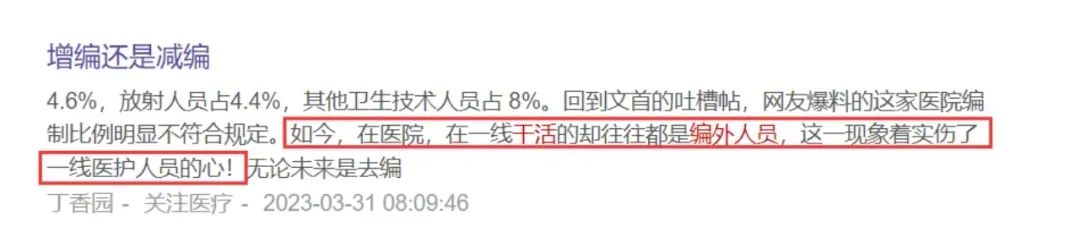 在这次清退编外人员的工作中,医疗行业是重点关注部分。卫健委负责人指出,公立医院编制标准严重滞后且没有落实,编外人员占比较高,目前占到了51%。医疗岗位专业性强、知识壁垒和技术壁垒高,所以不能像其他行业通过借调、部队转业、转岗等形式解决,导致医疗行业尤其是公立医院存在着大量的合同工和劳务派遣的编外人员。2023年9月,湖南省湘潭县就因为一下子清退了500名编外人员,引发热议。也有人担心,编外人员往往都是真正干活的人,现在却面临着被清退。如果清退了编外人员,那谁去干活呢?