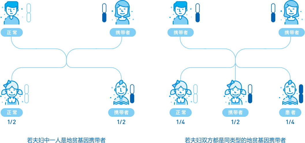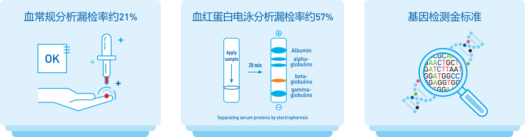 什么是地中海贫血? 地中海贫血是一种遗传性的疾病,根据累积不同的基因,可以分成不同的亚型,最常见的是α法地中海贫血和β地中海贫血。它的原因是由于基因的突变或基因的丢失,致使血红蛋白中的一种或一种以上珠蛋白链合成缺失或不足,进而影响了血红蛋白,引起了身体的整体血红蛋白数量含量下降,甚至引起全身其他的组织器官缺血、缺氧,所导致的贫血或病理状态。 目前,地中海贫血主要是遗传而来,多数都是由于父亲、母亲所具备的不同的基因给予小孩以一个复合、杂合情况。少数情况下是父亲和母亲具备同样的基因异常造成的小孩的同基因重合异常,造成地中海贫血出现。 本病广泛分布于世界许多地区,东南亚即为高发区之一。我国广东、广西、海南多见,长江以南各省区有散发病例,北方则少见。 本病是由于珠蛋白基因的缺失或点突变所致。组成珠蛋白的肽链有4种,即α、β、γ、δ链,分别由其相应的基因编码,这些基因的缺失或点突变可造成各种肽链的合成障碍,致使血红蛋白的组分改变。通常将地中海贫血分为α、β、γ和δ等4种类型,其中以β和α地中海贫血较为常见。其发病机制是合成血红蛋白的α珠蛋白肽链与β珠蛋白肽链合成速率的不平衡导致血红蛋白结构异常,这种含有异常血红蛋白的红细胞变形性降低,寿命缩短,可以提前被人体的肝脾等破坏,导致贫血甚至发育等异常。 地贫是一种隐性基因遗传病,只会遗传,不会传染。轻度地贫患者没有明显症状,表现跟普通人一样,没有什么特别;中度地贫临床表现差异很大,会有不同程度的黄疸,在应急或在服用一些药物会出现急性溶血加重贫血的症状,甚至导致溶血危象,有生命危险。 地中海贫血的类型 常将地中海贫血分为α、β、γ和δ等4种类型,其中以α和β地中海贫血较为常见。而根据病情轻重的不同,又分为以下3型: 中间型 多于幼童期出现症状,其临床表现介于轻型和重型之间,中度贫血,脾脏轻或中度大,黄疸可有可无,骨骼改变较轻。 重型α地贫 又称Hb Bart’s胎儿水肿综合征,为致死性血液病,受累胎儿由于严重贫血、缺氧常于妊娠23~40周时在宫内或娩后半小时内死亡。 重型β地贫 又称Cooley贫血。患儿出生时无症状,至3~6个月开始发病,呈慢性进行性贫血,面色苍白,肝脾大,发育不良,常有轻度黄疽,并具有典型的地中海贫血特殊面容,症状随年龄增长而日益明显。患儿常并发气管炎或肺炎,当并发含铁血黄素沉着症时,因过多的铁沉着于心肌、肝、胰腺、脑垂体等而引起该脏器损害的相应症状,其中最严重的是心力衰竭,是导致患儿死亡的重要原因之一。 地中海贫血的诊断 α珠蛋白生成障碍性贫血(地中海贫血) 1.静止型 红细胞形态正常,出生时脐带血中Hb Bart's含量为0.01~0.02,但3个月后即消失。 2.轻型 红细胞形态有轻度改变,如大小不等、中央浅染、异形等;红纽胞渗透脆性降低;变性珠蛋白小体阳性;HbA2和HbF含量正常或稍低。患儿脐血Hb Bart's含量为0.034~0.140,于生后6个月时完全消失。 3.中间型 外周血象和骨髓象的改变类似重型β地贫;红细胞渗透脆性减低;变性珠蛋白小体阳性;HbA2及HbF含量正常。出生时血液中含有约0. 25Hb Bart's及少量HbH;随年龄增长,HbH逐渐取代HbBart's,其含量为0.024~0.44。包涵体生成试验阳性。 4.重型 外周血成熟红细胞形态改变如重型β地贫,有核红细胞计数和网织红细胞计数明显增高。血红蛋白中几乎全是Hb Bart's,或同时有少量HbH,无HbA、HbA2和HbF。 β珠蛋白生成障碍性贫血(地中海贫血) 1.轻型 成熟红细胞有轻度形态改变,红细胞渗透脆胜正常或减低,血红蛋白电泳显示HbA2含量增高(0.035~0.060),这是本型的特点。HbF含量正常。 2.中间型 外周血象和骨髓象的改变如重型,红细胞渗透脆性减低,HbF含量为0.40~0.80,HbA2含量正常或增高。 3.重型 外周血象呈小细胞低色素性贫血,红细胞大小不等,中央浅染区扩大,出现异形、靶形、碎片红细胞和有核红细胞、点彩红细胞、嗜多染性红细胞、豪-周氏小体等;网织红细胞正常或增高。骨髓象呈红细胞系统增生明显活跃,以中、晚幼红细胞占多数,成熟红细胞改变与外周血相同。红细胞渗透脆性明显减低。HbF含量明显增高,大多>0.40,这是诊断重型β地贫的重要依据。颅骨X线片可见颅骨内外板变薄,板障增宽,在骨皮质间出现垂直短发样骨刺。 地贫是一种遗传病,和父母遗传有关!绝大多数地贫患儿的父母存在地贫基因携带,如父母均为携带者,则可能生育地贫患者! 地贫防控模式 地贫是我国南方地区重点防控的出生缺陷,其中婚孕前、产前和新生儿是地贫防控三个重要关口。 地贫筛查模式 地贫常规采用血常规、血红蛋白电泳和基因检测逐级筛查模式,其中基因检测是诊断地贫的金标准。 本文编辑:小薇 |
