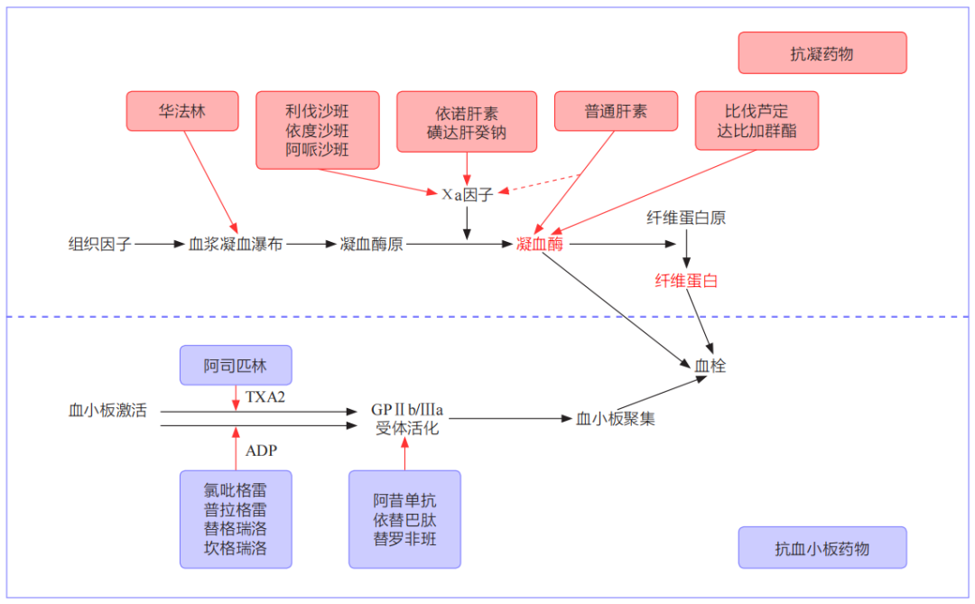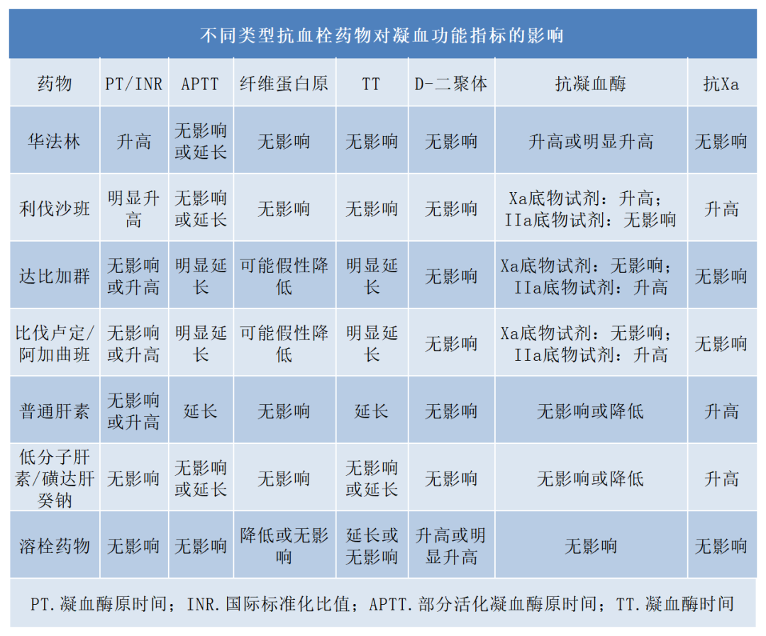 抗血栓药物是预防及治疗血栓性疾病的重要药物,不同类型抗血栓药物的作用机制不同,因此药物起效后对凝血功能指标造成的影响也有所不同,具体都有哪些?一起来看看吧! 图片来源:摄图网 抗栓药物种类及其作用靶点 图片来源:参考文献[2] 抗栓药物包括抗血小板药物和抗凝药物。常用肠道外抗凝药物包括普通肝素、LMWH、间接Xa因子抑制剂磺达肝癸钠和直接凝血酶抑制剂比伐芦定等。口服抗凝药物可分为华法林和新型口服抗凝药物,包括阿哌沙班、利伐沙班、依度沙班和达比加群酯等。 利伐沙班、阿哌沙班均为具有高度选择性、可逆性的直接Xa因子抑制剂,可抑制游离和血凝块内的Xa因子,但不影响已生成凝血酶的酶活性。达比加群酯是直接凝血酶抑制剂,直接并可逆地与凝血酶催化位点结合,阻断纤维蛋白原转化为纤维蛋白。 图片来源:参考文献[1] 1.抗血小板聚集药物 患者长期服用强效抗血小板聚集药物(替格瑞洛、普拉格雷),出血风险会明显升高,应每3个月检测1次血小板功能。如果发生出血事件,应立即检测血小板功能。 2.华法林 华法林可通过抑制维生素K相关凝血因子合成来发挥抗凝作用,常用PT/INR进行监测。 华法林的剂量-效应关系在不同个体中差异很大,且其治疗窗较窄,出血风险高,必须密切监测。使用华法林后,应使PT/INR达到2.0~3.0为宜。 3.肝素类药物 APTT是监测普通肝素抗凝效果的常用指标,但APTT对低分子肝素及磺达肝癸钠不敏感,不能监测其疗效。 抗Xa因子活性测定(Anti-Xa)已成为肝素类药物监测的有效手段,也是监测低分子肝素及磺达肝癸钠治疗的金标准。 4.直接口服抗凝药物(DOAC) 主要包括直接Xa抑制剂(如利伐沙班、阿哌沙班、艾多沙班)及直接凝血酶抑制剂(达比加群)。 直接Xa抑制剂推荐使用PT进行定性评估,PT可随直接Xa抑制剂的血浆浓度升高而延长。 口服直接凝血酶抑制剂推荐使用TT进行定性评估。TT对达比加群非常敏感,低剂量的达比加群也可使TT明显延长。 图片来源:摄图网 1.一般支持措施: 止血,控制低血压。目前还不明确控制低血压多久是安全的。 2.肝素 如需快速逆转肝素,应立即停止肝素并开始使用硫酸鱼精蛋白。鱼精蛋白的给药剂量应基于肝素使用时间计算。对于鱼精蛋白无特殊监测手段,但临床可通过观察患者出血情况及APTT的变化情况评价鱼精蛋白的逆转效果。 3.抗血小板药物 停止服用抗血小板药物;输注2~5U血小板可恢复受阿司匹林抑制的血小板聚集功能,但恢复腺苷二磷酸依赖的血小板功能较为困难。 在停用阿司匹林/替格瑞洛3d、氯吡格雷5d后,应再次权衡出血和再发缺血事件的风险,适时恢复适度的抗栓治疗。 4.华法林 INR>4.5时出血风险显著增加。服用华法林发生严重或危及生命的出血事件时,可联合使用维生素K1(10mg,反复缓慢静脉注射)和快速逆转剂(如凝血酶原复合物浓缩剂、新鲜冷冻血浆或重组活化因子VII)以逆转抗凝治疗。 5.新型口服抗凝药物 对发生新型口服抗凝药物相关的致命出血事件的患者,可考虑采用浓缩的凝血酶原复合物或有活性的凝血酶原复合物。 参考文献: [1]刘晓辉,宋景春,张进华,张伟,周静,王秋实,杨军,中国医药教育协会血栓与止血危重病专业委员会.中国抗血栓药物相关出血诊疗规范专家共识[J].解放军医学杂志,2022,47(12):1169-1179. [2]北京高血压防治协会,北京糖尿病防治协会,北京慢性病防治与健康教育研究会等.基层心血管病综合管理实践指南2020[J].中国医学前沿杂志(电子版),2020,12(08):1-73. [3]中华心血管病杂志(网络版)编辑委员会.口服抗栓药物相关消化道损伤防治专家共识[J].中华心血管病杂志(网络版),2021,04(01):1-8. 本文编辑:小薇 |