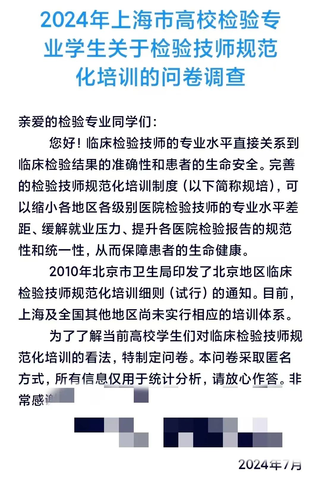 近日,某红薯上北京的一位博主所在医院通知所有学历全日制本科以上的检验技师报名参加规培。据悉该医院今年也是第一次要求检验技师参与规培。 另外上海也在今年毕业的检验专业学生中进行了关于检验技师规培的调查。 北京和四川在国内最早启动检验规培。全国各地也有很多医院都设有检验医师、技师规培的站点。 过去的十数年中,各地医院的检验规培也逐渐建立起了一套科学完整可行的检验规培体系 首都医科大学附属北京世纪坛医院 检验医师,检验技师规范化培训教学流程图 从培训内容及目标设定、培训时间安排、培训期间待遇和培训结束考核等方面都有了完整的制度安排,但检验医师/技师规培的发展仍然面临不少现实问题。 住院医师规范化培训制度最早出现在19世纪末的德国,随着制度本身的不断改进与创新,目前已得到全世界范围内各国医学院界的广泛认可。我国于1993年开始了住院医师规培制度的探索。 2013年底,前国家卫计委等七部门联合出台《关于建立住院医师规范化培训制度的指导意见》。《指导意见》要求,2015年全面启动住院医师规范化培训工作,2020年基本建立住院医师规范化培训制度,其中当然也包括检验医师。 检验规培起步虽然较晚,但一直在稳步推进中。 2003年10月,中国医师协会检验医师分会成立。 2004年,四川华西、北京协和、首医、中国医科大学附属医院等率先开展了5年制、3年制住院检验师培养。 2006年,原卫生部发布的《医疗机构临床实验室管理办法》中规定“诊断性临床检验报告应当由执业医师出具”。 2007年北京协和医院、南方医科大学南方医院、中南大学湘雅医院38所医院等被确定为原卫生部首批检验专科医师培训试点基地,开始较为系统地探索和总结规范的检验医师规培模式。 然而,2012年,原来的“医学检验”本科专业改为“医学检验技术”,五年制变成了四年制,授予的学位也从“医学”改为“理学”。 2014年,明确规定“医学检验技术”的四年制理学毕业生不能参加执业医师考试,不能参加住院医师规范化培训,尽管允许了2012年12月前入学的五年制医学检验参加执业医师考试。 鉴于此,检验规培已经普遍采用两条线并轨的形式,一种是检验医师规培,培训年限3年;另一种则是检验技师的规培,培训年限一般为2年。 检验医师规培根据《住院医师规范化培训内容与标准(试行)》,规定:检验医师的规范化培训时间为 3 年,临床科室轮转时间共 14 个月,以内科为主,包括心血管、肾脏、呼吸、消化、内分泌、血液等 6 个专业。检验专业轮转共 22 个月,包括临床基础检验、临床化学检验、临床免疫学检验、临床血液学检验、临床微生物学检验、急诊与输血检验等 6 个专业,而且在检验科轮转期间还要求每两周参加一次临床查房和科巡诊。 国家卫健委人才交流中心发布的2018版《住院医师规范化培训结业理论考核大纲(试行)》、《住院医师规范化培训结业实践技能考核指导标准(试行)》是目前官方发布的比较权威的检验医师规培的理论和实践考核指导标准。 检验医师规培的理论考核包括公共理论和专业理论两个大部分。公共理论内容包括政策法规、循证医学与临床科研设计、医学伦理学3个部分;专业理论包括检验相关基础理论知识、检验相关专业知识、检验专业基本技能3个部分。 北京卫生局早在2010年就已经发布了《北京地区临床检验技师规范化培训细则(试行)》。 《细则》中将检验技师规培的目标设定为使受训者达到主管检验技师专业技术水平。规培对象包括检验专业毕业的本、硕、博毕业生。根据学历和临床工作经验的不同采取分层次分阶段培训,培训时间从9个月~33个月。 科室包括检验科室和临床科室,检验科室分为临床基础检验、临床血液检验、临床生化检验、临床微生物检验临床免疫学检验、临床输血六个亚专业组;临床科室由培训基地根据学员情况在心血管内科、呼吸内科、消化内科、肾内科、血液和风湿内科、内泌内科、神经内科、普外科8个科室中任意选择3个临床科室,每个科室轮转1个月。 受训者在每轮转完一个科室或完成一个训练周期后,由培训基地,按照各专科/亚专科培训细则要求,对其临床业务能力、工作成绩和职业道德等进行考核,并将核結果及有关奖惩情况记录在培训考核手册上。 培训考核也一般分为日常考核、各专业组轮转考核、年度考核、结业考核等。 发展欠佳 一方面因为没有强制要求,各地医疗机构在实际招聘过程中也并未将检验规培作为通用前置条件;而另一方面检验医师规培需要规培生拥有执业医师资格,检验专业毕业生不具备考取医师资格,临床专业毕业生转投检验的数量很少,因此无论是检验技师规培还是检验医师规培,近些年来都发展欠佳。 晋升困难 检验医师规培结束后,有些医院检验科已经分设医师岗和技师岗,如果选择医师岗,那么晋升也需要按照医师的职称晋升规则进行。可能需要面对两套晋升体系同时进行,而且规培技术后满2年才能考主治医师,职称晋升相对较慢。另外医师晋升不仅考试难度更高,一般还有下乡或者援外的要求,晋升难度明显提升。 两种培训模式不同问题 一方面,我国检验人员的配置和管理一直沿用旧的模式,且岗位薪酬较低,临床医学本科专业的医师大多不愿意从事检验工作。因此,从事检验医学专科医师岗