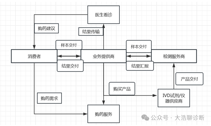 1.前言: 而在9个月的开展时间中,MTHE开展的7个城市共计送检超50万例呼吸道样本。而在今年7月MTHE的阴道微生态项目,JDHE(京东)70余项检测项目也陆续加入到居家送检业务中。 首先表明大浩的观念依旧没变。居家送检业务还是处于四方皆赢的状态。以下图为例。 终端消费者用户:是整个居家送检业务的起点。其按照开单类型可分为用户自发型和医生指导型。 在某类疾病爆发期间,以及对于灵活就业、不方便就医的消费者看来居家送检业务确实解决了上述人群的真实、迫切的需要。 消费者通过相对低的价格获得了准确,快速,可及的检测,通过线上看诊和买药服务完成,诊医药的闭环体验,最重要是消费者从采样到诊断再到最终的药物送达可做到全程足不出户。 业务提供商:通过提供给消费者用户对接端口(APP/小程序)与服务人员(配送及采样人员),与IVD的产品供应商达成合作,并将检测服务外送至有资质的检测服务商进行检测,后交付结果。 最后提供给消费者在线看诊与购药服务,以完成诊医药的医疗闭环。其拓展,创新业务模式。是整个居家送检业务的中心。 检测服务商:从业务服务商手中收取样本,从IVD供应商获得试剂/仪器,并提供给销售者实际的检测服务,最后将结果汇报。从而获得稳定的的检测量,拓展业务。属于整个业务的下游。 IVD供应商:与业务提供商达成合作协议,定向往检测服务商提供产品与技术/售后服务。通过与检测服务商和业务提供商合作开展新的业务路径。属于整个业务的下游。 2.1.1.线上下单、线下采样: JDHE和MTHE一开始的呼吸道病原体检测项目都是通过线上下单、线下采样的方式,通过自有端口和运力完成下单到送检的流程。 再通过与具备相关检测资质的第三方医检所合作,由其提供检测服务和结果汇报。 2.1.2.检测时效性、价格: 呼吸道的检测都承诺在3小时出具结果,同时价格为首单69.9元,第二单及以后99.9元的价格。 2.1.3.开展背景及范围: 业务开展的背景基于2023年呼吸道疾病流行且出现多个病原体叠加感染。这导致大量人群尤其是儿童出现呼吸道疾病,致使医院大量收治患者,再加之呼吸道感染用药是需要先检测明确病原体后方可用药。 因此满足快速、准确、可及、无需排队等待等需求呼吸道居家送检顺势而出。 根据JDHE的报告目前其呼吸道检测项目北京、上海、广州、深圳、杭州、武汉、重庆、成都、天津、苏州,10个城市开展。 MTHE在流感大会上介绍其项目覆盖北京、广州、上海、深圳、南京、杭州、成都7个城市。 其一:这些地区有庞大的用户人群以及对呼吸道病原体检测的消费意愿和切实需要。 其二:这些地区的ICL资源丰富,可以满足送检要求和及时结果汇报等业务需求。 其三:这些地区医疗资源相对集中,导致基层诊疗能力相对真空。致使基层对于患者就诊的分流能力较差。 如果说刚开始MTHE(美团)与JDHE做呼吸道病原体检测业务,都是摸着石头过河的话,业务开展一段时间后,其拥有固定且庞大的用户群体、成熟的商业模式、高效稳定的检测流程、可观的检测数量。当其拥有上述的一切条件时也许就该扩展新的业务。 2.2.1.后续开展项目: 这两家后续的开展业务就大相径庭。 MTHE后续开展的是价格39.9的阴道微生态检测,其需要样本自采。第一批已覆盖北京、广州、深圳、杭州、成都、南京6个城市。阴道微生态居家送检的简析和建议。 JDHE则是开展包含糖尿病评估、高尿酸血症、痛风、高血脂症、甲状腺功能异常等项目在内的70种血液检测指标,而JDHE则是使用令人放心和合规的护士上门采样方式。覆盖地区为北京城区及部分近郊区。 但我们不能忽视检测项目的性质带来的采样方式的不同。让患者自采有创的血液样本这并不现实,所以护士上门采样有其必要性。而阴道微生态的宫颈拭子,女性也可以自行采样所以护士上门采样也并非必要。 2.2.2.开单的模式: 二者在后续开展项目的开单方式也完全不同。JDHE是线上医生指导开单,大浩称之为医生指导型开单,MTHE则依然沿用用户线上自行下单,线下检测的模式,大浩称之为用户自发型开单。 2.2.3产业链背景: 虽然在最初的流程图中可以大致看出业务的流向及关系,但是最重要的检测后的药品流通患者二者也截然不同。 MTHE是依靠数量庞大的合作药店,通过使用自有运力将药品从药店送达用户手中。 JDHT则是拥有药品平台,看诊后下单,药品可从平台直接发货到用户手中,这样药品的流通环节更少、对业务可控性更高、故猜测利润也高一些。 因此JDHE开展居家送检业务不仅可以拓展业务,也可以为自有的药品平台引流,以获得更多的潜在机会。 2.2.4.服务人群及逻辑: 其实从开单模式到后续开展项目也可以看到,虽然JDHE与MTHE都在做居家送检的业务,但是大浩认为其服务人群和底层逻辑则不太相同。 MTHE的阴道微生态检测项目,其主要服务人群是城市中工作的成年女性,此类人群可能会存在阴道微生态失衡的情况,因此检测后通过平台提供的在线问诊、跟进购药业务即可完成诊医疗的闭环。 大浩评价这是一个好项目但也任重而道远。评价其为好项目是因为我国女性在2020年第五次人口统计中为6.8亿,意味着我国成年女性体量非常高,而且STIs和阴道炎类的疾病特点就是复发率高。 基于上述现状,这既保证充足的检测体量,而又潜在提升开单的重复性和顾客粘性。 任重道