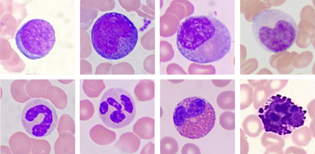 作者 | 韩海燕 单位 | 郑州大学第二附属医院 检验科 还记得血液学实验课上红蓝铅笔绘出的细胞彩图吗?或蓝或红的胞浆,蓝紫色的胞核,深深浅浅,各有特色。那时的我们大都不曾学过专业的美术,单凭着对细胞对生命的理解,认真完成一份课堂作业,俨然勾勒出一幅锦绣山河。 骨髓细胞分为六大系统:粒、红、巨、淋、单、浆,每个系统具有原始、幼稚、成熟三大阶段,其中红系和粒系的幼稚细胞又分为早、中、晚三个阶段。 在骨髓细胞的发育过程中,其形态变化遵循着一般规律:①胞体由大到小(两个特殊:原始粒胞体小于早幼粒;巨核系中的原始巨、幼稚巨、颗粒巨胞体依次变大,产板巨和颗粒巨大小相当,裸核巨大小不定)。②核染色质由细致疏松到粗糙致密,核仁从有到无。③胞浆颗粒从无到有(粒系、单核系)。 看细胞就像看人,一般先看个头和体形,再看衣着打扮,真正了解还要看其内心。认识细胞也是一样:首先看细胞体积,包括大小与形状;其次看细胞质,包括胞质的量、着色、内含物(颗粒及空泡等);最重要的还要看细胞核,大多数时候,核染色质的性状和核仁是区分原始、幼稚细胞的重要标志。 人们常说“相由心生”,正常的细胞通常显得规规矩矩、漂漂亮亮,异常或肿瘤细胞可能就奇形怪状了,当然,也有善于伪装的,这就需要我们下功夫去辨别。 粒细胞系统根据核形和核染色质的凝集程度划分不同的阶段:原始粒、早幼粒、中幼粒、晚幼粒、杆状核和分叶核粒细胞。 胞核在原始和早幼阶段呈圆形或类圆形,到中幼粒变为一侧扁平一侧钝圆,从晚幼粒阶段开始凹陷(凹陷程度小于假设核直径的1/2),杆状核呈粗细均匀的条带状(若粗细不等,最窄处不小于最宽处的1/3),分叶由核丝相连,通常分3-5叶,像散开的花瓣。针对以上核形变化的特征,粒系的发育过程可以说是“花好月圆”的呈现。 “夕雨红榴拆,新秋绿芋肥”,有花便有果:从中幼粒阶段开始,根据胞浆颗粒的性质分为中性粒、嗜酸粒和嗜碱粒,中性颗粒呈水蜜桃样的粉色;嗜酸颗粒为粗大、均一、饱满的橘红色,排列紧密像石榴籽;嗜碱的颗粒染紫黑色,大小不一、多少不定,可覆在核上,用切开的火龙果来形容也很贴切。 图1 粒系各阶段细胞形态 注:第一排从左至右依次为原始粒、早幼粒、中性中幼粒、中性晚幼粒,第二排从左至右依次为中性杆状核、中性分叶核、嗜酸性分叶核、嗜碱性分叶核粒细胞。 红系,分为原始红、早幼红、中幼红、晚幼红和成熟红。红系给人印象最深的是原始红和早幼红的胞浆,染深蓝色,称油墨蓝。中幼红阶段的细胞开始合成血红蛋白,胞浆呈红蓝相间的灰蓝色或嗜多色性,晚幼红胞浆则接近于成熟红细胞的橙红色。 红系的核染色质从粗颗粒状到轻微聚集呈烟丝状,再到副染色质出现时的“打碎墨砚感”,以及晚幼红阶段的固缩成块,其核形始终保持圆形,再加上胞浆色彩的鲜明改变,可以用 “淡妆浓抹总相宜”这句诗来形容。 图2 各阶段有核红细胞 淋巴细胞可分为原、幼淋和成熟淋巴。正常骨髓早期的淋巴细胞很少,大量出现时多见于急淋白血病。成熟淋巴的核染色质致密光滑如鹅卵石,所谓“潭面无风镜未磨”,那平静而光滑的感觉,是不是像极了无风的潭面和未经打磨的镜子呢? 图3 淋巴细胞形态 注:正常骨髓中少量存在的原幼淋又称为B祖细胞,核染色质略粗,有厚重感;成熟淋巴细胞的核染色质致密如“鹅卵石”,其中大淋巴胞浆丰富,透明天蓝色,可有少量大而稀疏的嗜天青颗粒,小淋巴胞浆量少。 浆细胞在正常骨髓中的比例<2%,它的主要特点是胞浆泡沫感,核偏位,核周初浆区。原、幼浆与成熟浆细胞不好区分,初学者可以借助核浆比进行鉴别:以1/2为界,核占胞体大于1/2(书上是2/3)倾向原幼浆,核占胞体小于1/2则偏向成熟浆,当然还要结合核染色质的性状。 也许,《暮江吟》里的一句诗用来形容浆细胞更为形象,“半浆瑟瑟半江红”,一半一半,既划分了阶段,又道出了核与浆特色分明的过渡。 图4 浆细胞形态 单核细胞分为原单、幼单、成熟单,胞体偏大,胞浆不透明灰蓝色,其中有细小灰尘样颗粒,称雾霾蓝,也可见胞浆空泡。原、幼单的核染色质细致呈丝网状,成熟单的核染色质聚集呈条索状,核形不规则,扭曲或折叠呈笔架形、肾形、马蹄形,有起伏感,亦如层峦叠嶂的山峰。 巨噬细胞是单核细胞演化而来的具有吞噬和抗原呈递作用细胞的总称。单核-巨噬系统细胞进入骨髓组织后可以成为组织细胞(或称网状细胞)。组织细胞呈圆形、椭圆形或不规则形,胞体大小变异大,浆染蓝或灰蓝色,边缘不规则,浆内无颗粒或有少量紫红色嗜天青颗粒,可有吞噬物。核染色质细致疏松。 图5 单核细胞和组织细胞 巨核细胞分为原始巨、幼稚巨、颗粒巨、产板巨和裸核巨,一般用低倍镜即可进行巨核的计数。巨核细胞的胞体大、核大,给人的感觉是志存高远,但它产生的血小板却很低调,是骨髓和外周血中最小的有形成分,在止凝血系统中发挥重要的功能。 《咏凌霄花》中有两句诗可以形容巨核系统:披云似有凌霄志,向日宁无捧日心。 图6 各阶段巨核细胞 除了以上六个系统,骨髓中还有其他细胞:成骨细胞、破骨细胞、组织嗜酸、肥大细胞等。每种细胞都有其独特的形态特征及生理功能,基因和蛋白的功能实现离不开细胞提供的稳定微环境,而细胞之间的协同作用则构成了机体新陈代谢的