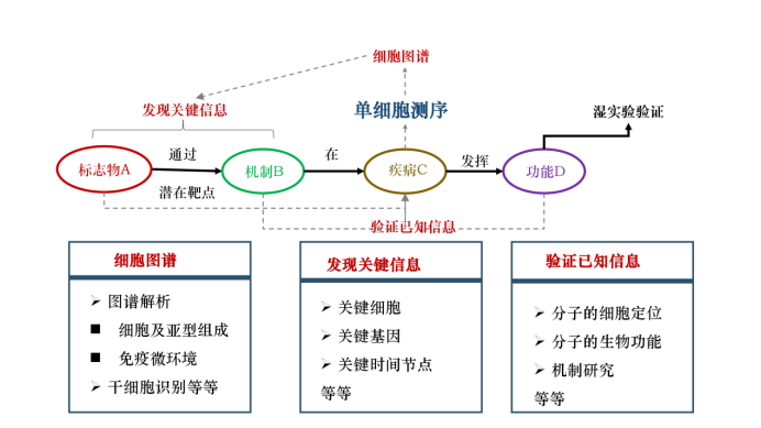 随着测序技术的不断发展,单细胞转录组测序和空间转录组测序已成为了科研项目的新方向,目前已有相当多的高分文章是基于单细胞转录组测序或空间转录组测序技术。在新的国自然周期即将开始之际,我们聊一聊单细胞转录组测序和空间转录组测序的相关内容和科研思路,希望可以帮助到有需要的朋友。 01 单细胞转录组测序 单细胞转录组测序简介:单细胞转录组测序(Single-Cell RNA Sequencing, scRNA-seq),简单来说,就是在单个细胞水平上,利用RNA测序对特定细胞群体进行基因表达谱定量的高通量实验技术。 单细胞转录组测序意义:对于传统测序(Bulk sequencing)而言,大多是基于多细胞进行的,得到的信号结果也是基于细胞群体信号结果的平均值,无法检测细胞间的差异。然而,在细胞侵袭、转移和耐药性演变中细胞间的差异可能发挥着重要作用;因此,在单个细胞水平上进行的单细胞转录组测序就应运而生,其揭示细胞间异质性信息的功能在肿瘤学、免疫学和神经科学等生物医学领域具有巨大潜力。 应用场景:基于上述优势,单细胞转录组测序在科研方面有着广泛的应用,主要应用场景如下 肿瘤研究:肿瘤细胞异质性;肿瘤细胞分群;新类型细胞的发现;免疫逃避以及耐药性的产生机制;寻找新的致病途径与分子机制。 干细胞分化以及组织器官发育研究:全面剖析干细胞异质性;识别潜在的干细胞;寻找不同类型干细胞的特异性标记(肿瘤干细胞等);解析干细胞分化和发育的分子机制。 神经系统发育研究:研究神经细胞的异质性以及神经细胞的分群情况,有助于更加深入地理解神经系统的发育以及神经疾病的早期表现。 免疫方向研究:分析并展示病原体导致的免疫细胞高度异质性,从而理解复杂的免疫机制;并且可以发现新的标记基因,结合特定膜蛋白抗体进行验证,便于更深层次地挖掘免疫反应的分子机理。 经典科研思路:如何利用单细胞测序进行课题研究?目前主流的科研思路是针对特定疾病开展单细胞测序,深入挖掘目标细胞亚群的多维度信息(包括来源、去向、靶点、机制、潜在临床应用),并最终通过湿实验进行验证。 02 空间转录组测序 空间转录组测序简介:空间转录组测序(spatial transcriptomics)是从空间层面上解析单个组织切片中的所有mRNA信息,从而能够定位和区分功能基因在特定组织区域内的活跃表达,同时获得细胞的空间位置信息和基因表达数据。 空间转录组测序意义:在单细胞测序过程中,样本细胞被打散,经组织解离以及通过微流控体系时,细胞损失较大,且信息容易失真。此外,制成悬液的单细胞样本会导致细胞空间位置信息的丢失,而空间转录组学测序能够在组织切片中保留mRNA的空间位置,可为研究者提供全新的视角来理解生物过程和疾病机制。 应用场景:基于上述优势,单细胞转录组测序在科研方面有着广泛的应用,主要应用场景如下 肿瘤/疾病研究:肿瘤异质性;辅助分型;疾病发生机制。 免疫微环境分析:微环境中细胞成分及其互作;根据淋巴细胞浸润情况评估免疫治疗的效果。 神经科学研究:探索不同大脑区域的基因表达模式及其与功能的关系;分析不同疾病的组织变化及基因表达特征。 发育生物学研究:研究不同发育阶段的基因表达变化;探索干细胞分化过程中的空间特征与基因表达的关联。 药物开发和个性化医疗:通过分析药物作用后的基因表达变化,理解其作用机制;通过空间表达特征提供个性化治疗方案。 03 单细胞联合空间转录组测序的应用 应用案例:一项通过多重免疫染色、空间转录组和单细胞RNA测序技术的研究揭示了放疗后免疫细胞浸润肿瘤、基因表达动态变化及髓系细胞免疫反应相关基因显著上调。这些发现为寻找个性化免疫治疗靶点并指导联合治疗时机提供了重要信息,实现了“1+1>2”的效果。该研究也发表在了Science Advances上(IF:11.7)。 04 小结 单细胞和空间转录组测序技术均属于前沿基因分析技术,无论您选择哪项,或是联合应用,都会为您的文章“锦上添花”。 |