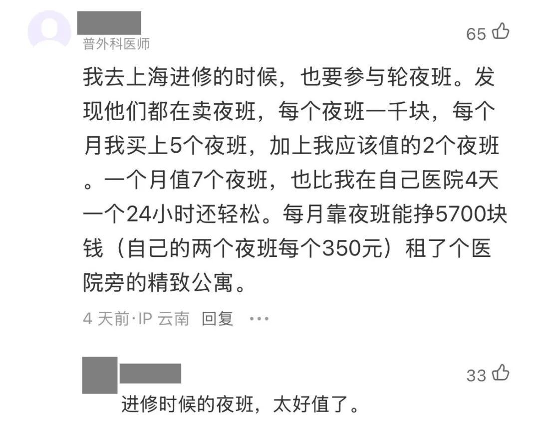 还分享了医护的买班经历:每月靠夜班能挣 5700 块钱(自己的两个夜班每个 350 元)。